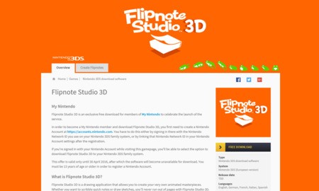 Click on either of the 'Flipnote Studio 3D game page' links and you'll find yourself here.