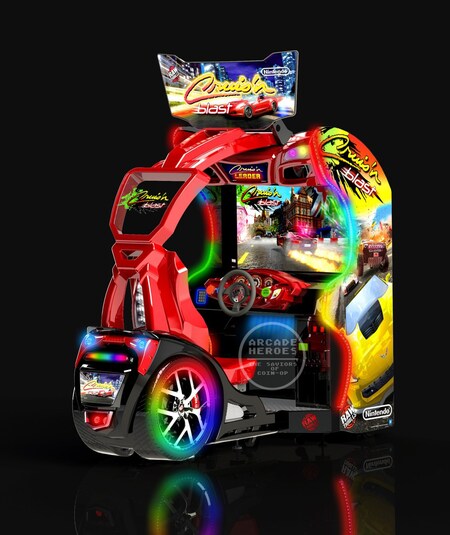 Cruis'n Blast is being developed by Raw Thrills but Nintendo's name is featured predominately on the cabinet, presumably because it has sole ownership of the brand now that Midway Games - the original developer - no longer exists.