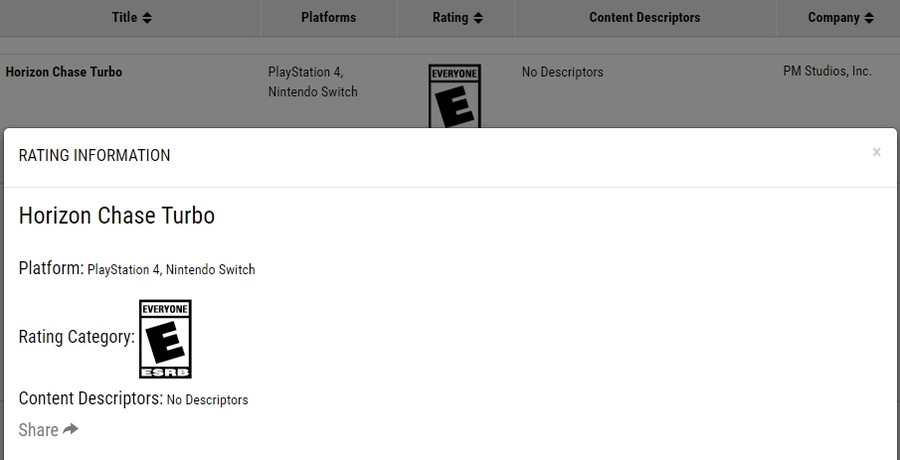 It appears the Brazilian-based developer Aquiris is moving forward with a Horizon Chase Turbo physical release after a listing for the title has been spotted on the Entertainment Software Rating Board in the US. The Switch and PlayStation 4 hard copy will be published by PM Studios, which is known for previous physical releases such as Superbeat: Xonic and MUSYNX.