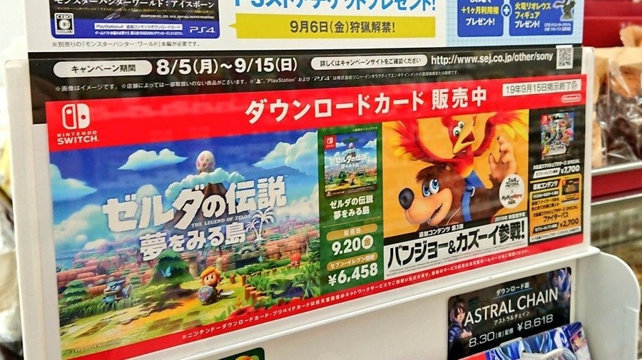 The image below shows an advertisement found within a 7-11 store in Japan, shared online by @PushDustIn. Advertising upcoming products, the poster shows off Banjo's upcoming Smash appearance as well as The Legend of Zelda: Link's Awakening which launches on the 20th of this month.