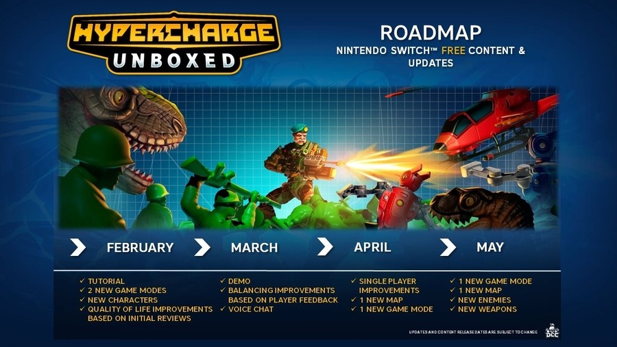 On the official Hypercharge: Unboxed Twitter account, the UK-based indie developer behind the game – Digital Cybercherries – revealed all of the game's updates would be entirely free and shared a full road map of the plans for the next four months after the game releases.