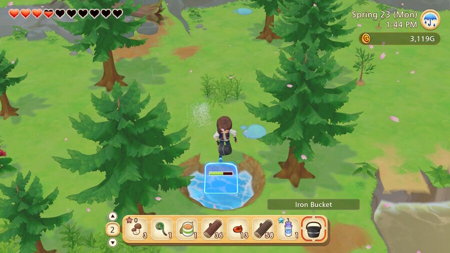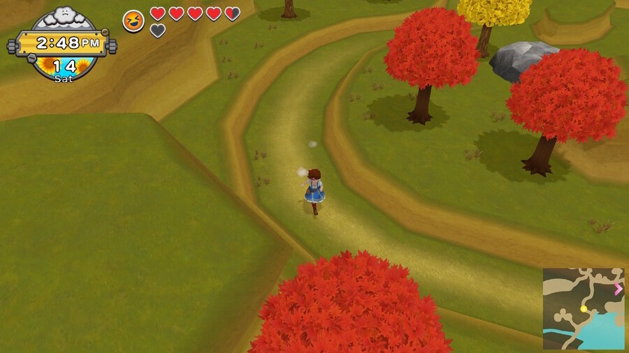 Finally, there's the automatic tool-switching, which is a godsend. Perhaps some Harvest Moon players prefer to have their toolbar organised just the way they like it, or to have a little more control over what they intend to do, but One World does away with all of that. If you're pressing A next to a tree, you'll chop it. If you're pressing A next to the sea, you'll fish. Now your inventory can be filled with things you actually need, rather than every single tool you might need.
