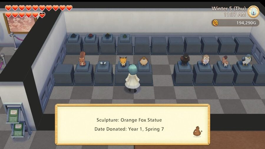 The progress in general is fast but satisfying. You'll unlock most of the tool upgrades by the end of Year One, and maybe even be on your way to marriage. After a year, our Museum is almost full, and we barely even tried, and we've almost completed the story of Pioneers of Olive Town, which requires building up the town to attract tourists. Lovett, the local Gourmet, is often asking for meals of a certain quality, and we're about halfway through those requests, too.