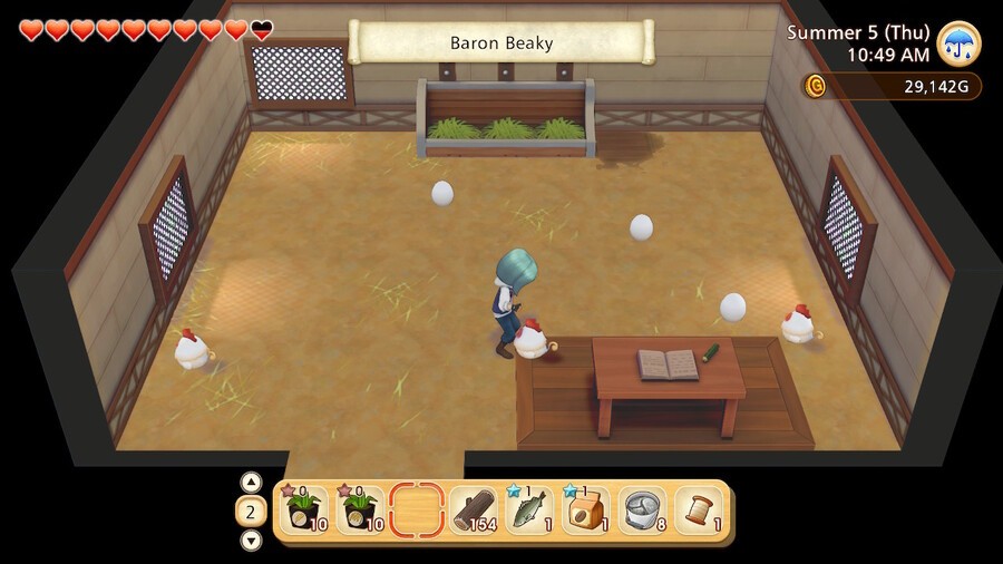 Progress is both slow and fast in the game's first season. Visiting the mine will net you iron and silver ore, which can be used to upgrade your tools for better, quicker coverage. It's extremely satisfying to chop down an entire forest in one fell swoop, and scooping out puddles and ponds with the new bucket is time-consuming, but rewarding. Gone are the days of milkers and shears, though, with the two jobs being done with a simple A-press next to the animal instead. Neat!