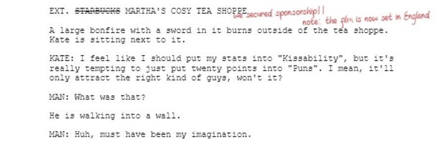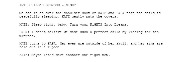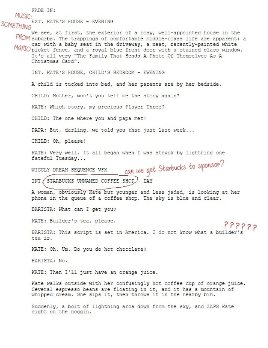 Anyway, here's a few excerpts of the script. We didn't get the whole thing, but who wants to spend their weekend reading through an entire script? Not us, that's who.