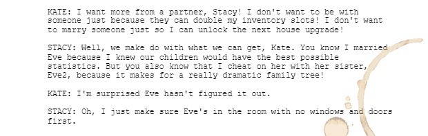I didn't think reading a script would give me such a clear view of a romantic comedy mixed with Ubisoft bugs. Thanks for the read