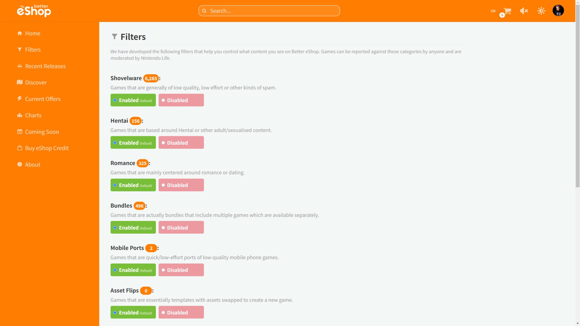 The shovelware filter, which is set on by default, filters out 6434 games. That's mental. I knew it was a lot but bloody hell.