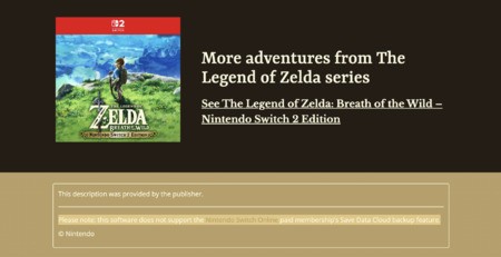 You'll find the same message at the bottom of Nintendo's Donkey Kong Bananza listing, and the original poster claimed it could also be found on the Breath of the Wild and Super Mario Party Jamboree Nintendo Switch 2 Edition pages, but it seems to have been removed now. Hmm.