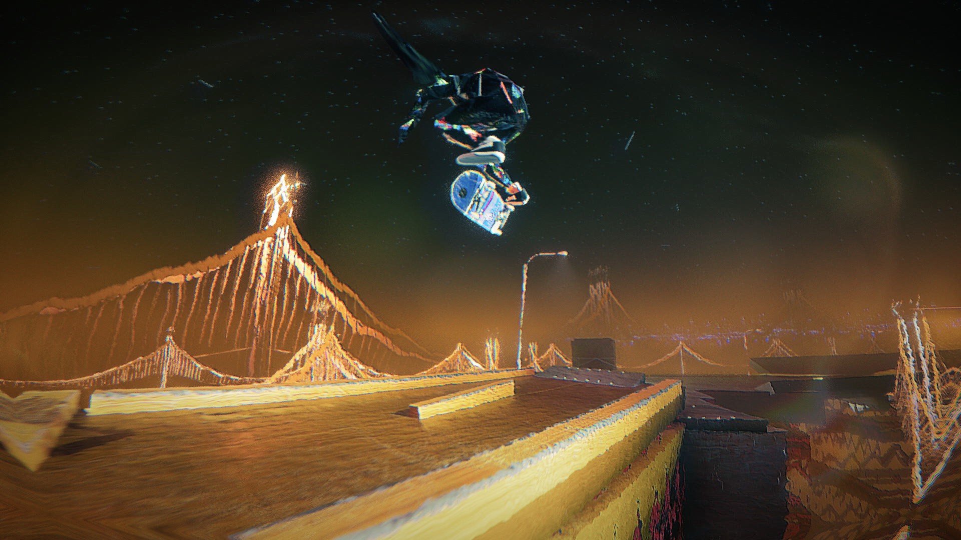 What this all means for us players, apparently, is some incredibly cool-looking skateboarding action as your trippy, glass skater-boi gets busy blasting around the Wastelands en route to the actual moon. Good luck with that!