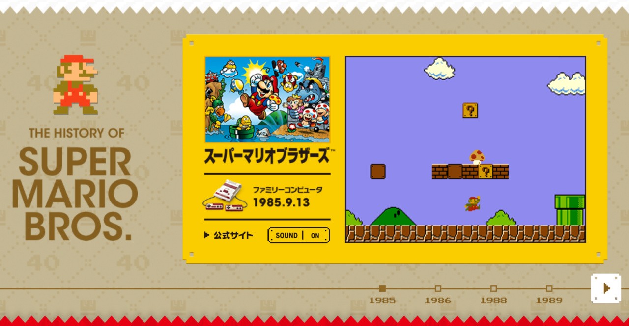 Super Mario's 40th anniversary celebrations are now officially underway, and apart from all the exciting announcements during last week's Direct broadcast, Nintendo's official websites have also been updated with the series' timeline.