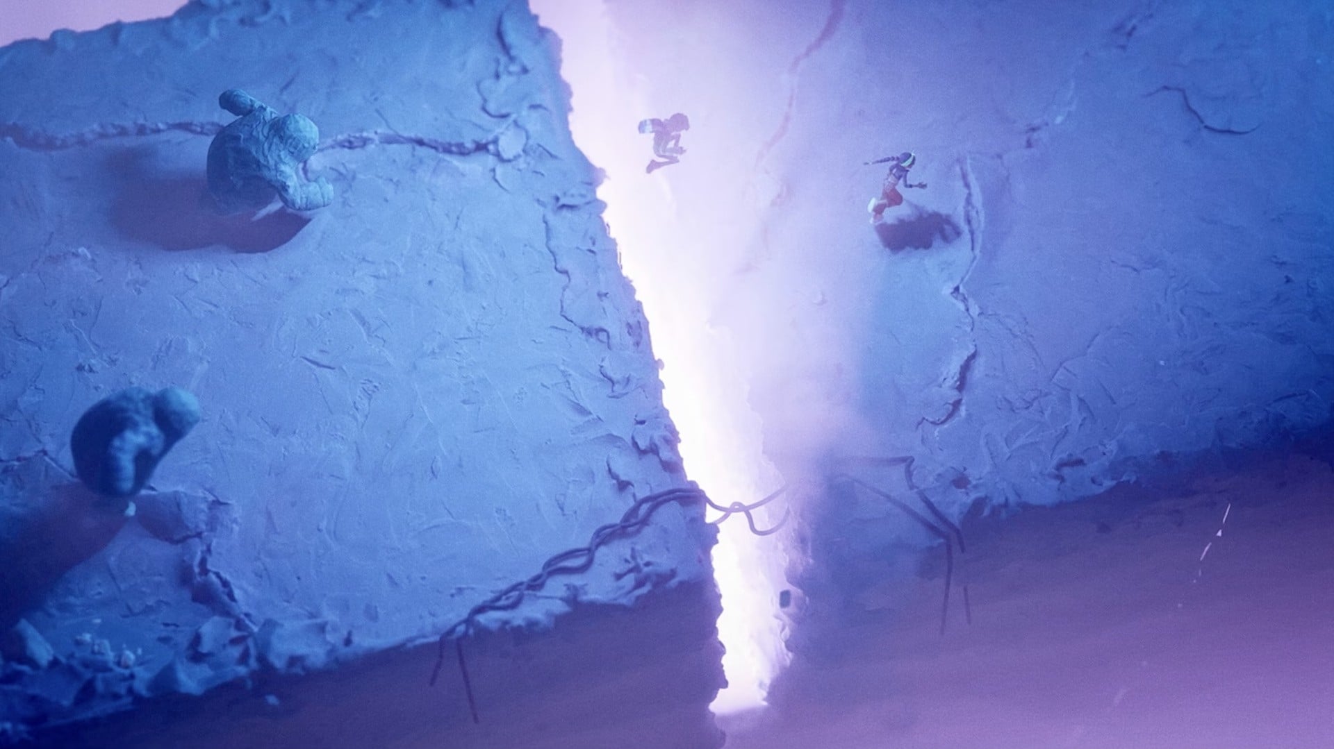 "Find your lost voices in a co-op platformer adventure. Together with a friend, via online cross-platform or couch co-op, explore the wild, colorful realm of Vokabulantis as Kurt and Karla in a story about the first time they held hands — where everything you see is crafted by hand."