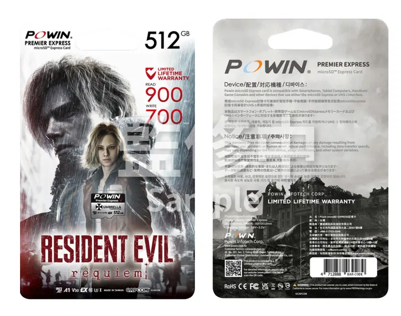 This 512GB card comes Powin features the Umbrella Corporation logo on it. Apart from this, it works the same as any other card, and allows you to save all of your Switch 2 data on it.