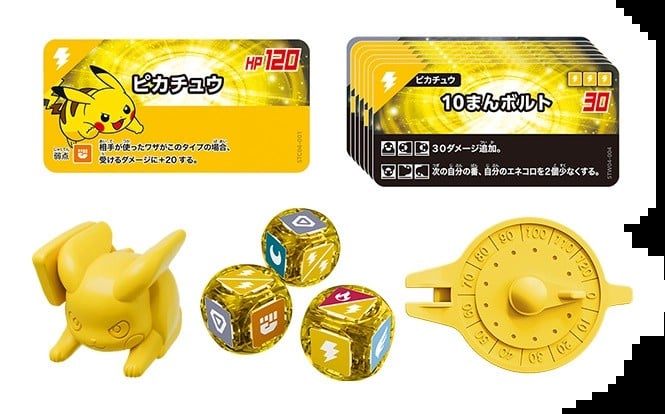 This is a tabletop game by TPC and Bandai where players customise their dice with a variety of energy types, before rolling them (and an adorable cube-shaped Pokémon) to attack. If the energy rolled matches an attack on the player's move card, they deal damage to their opponent.