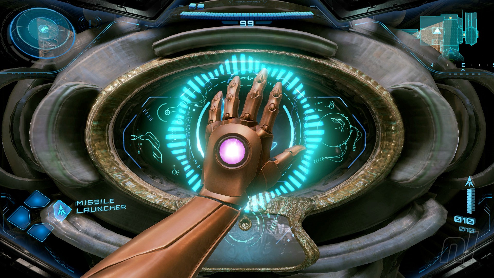 For example, there are these little glowy orbs called Psychic Motes that you need to use your special psychic glove to attract and throw into appropriate receptacles in order to open certain doors. You do this using the scan visor (trust me), which is now also the psychic visor (told you to trust me).
