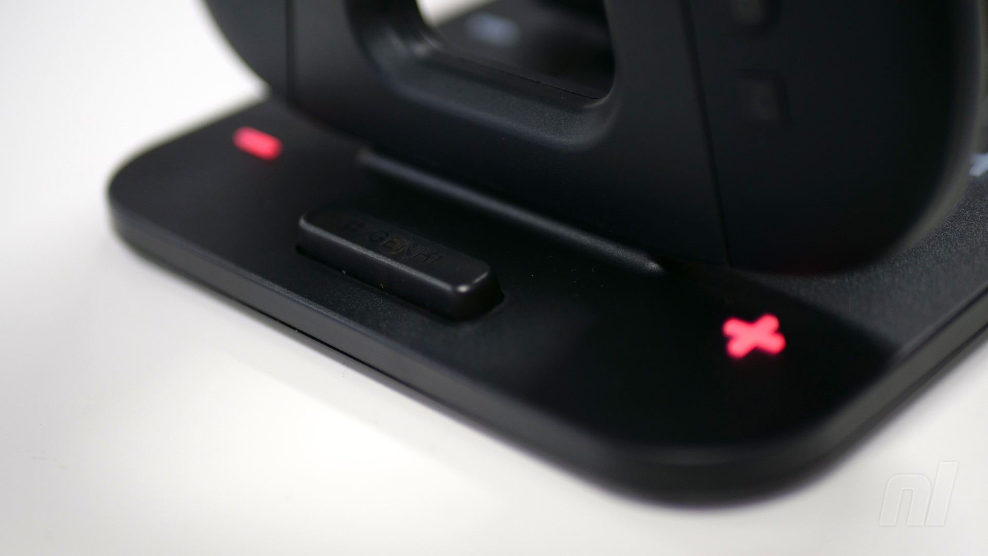 When charging on the dock, you'll see a pair of red LEDs light up for each Joy-Con – these turn to green once each Joy-Con is at full capacity. To eject the Delta grip, you press the button in front.