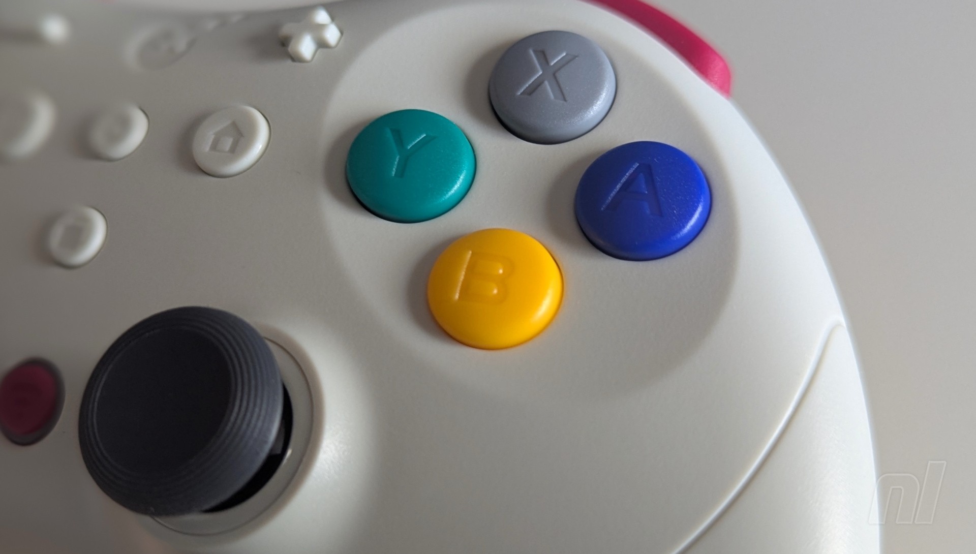 The face buttons and shoulder buttons all feel nice: pleasingly ‘clicky’ without producing a whole lot of noise. Again, a huge shoutout goes to the ‘Retro’ model here: the grey, green, blue, and yellow ABXY buttons look lovely, and I’ve grown really quite fond of the cranberry-coloured shoulder buttons and sync button. Much like the D-pad, you can fiddle with the settings to reassign inputs - pretty good if you’re not fussed about doing it on the Switch itself.