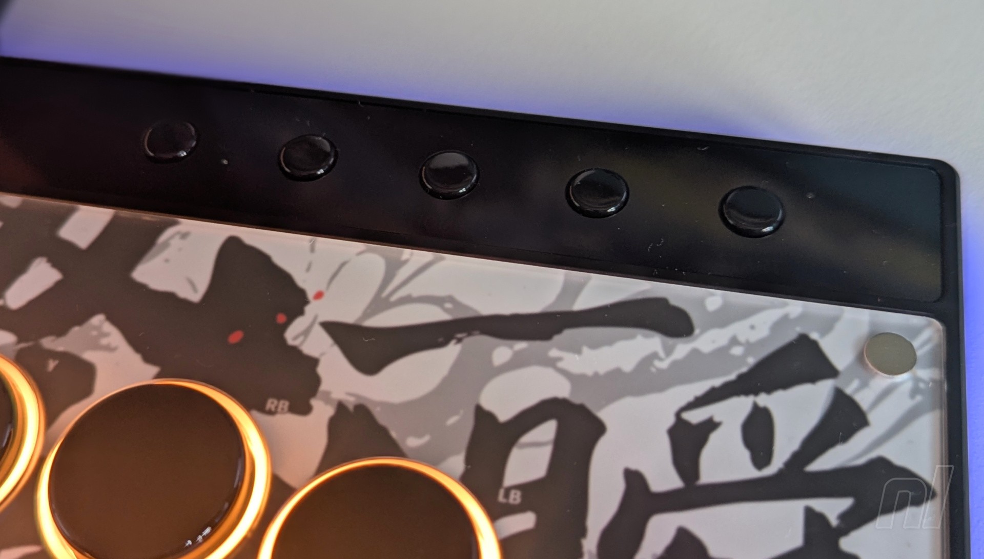 Around the outside of the controller, you'll also find an RGB strip, and this looks awesome when laid on a flat surface in a dark room. It really helps the controller stand out in the crowd, and this combined with some custom artwork allows for some self-expression. Of course, you can take this a step further by customising the lights to your liking via the configuration tool. You can make it so the buttons and RGB strip present specific colours, or you can simply prevent them from changing on their own.