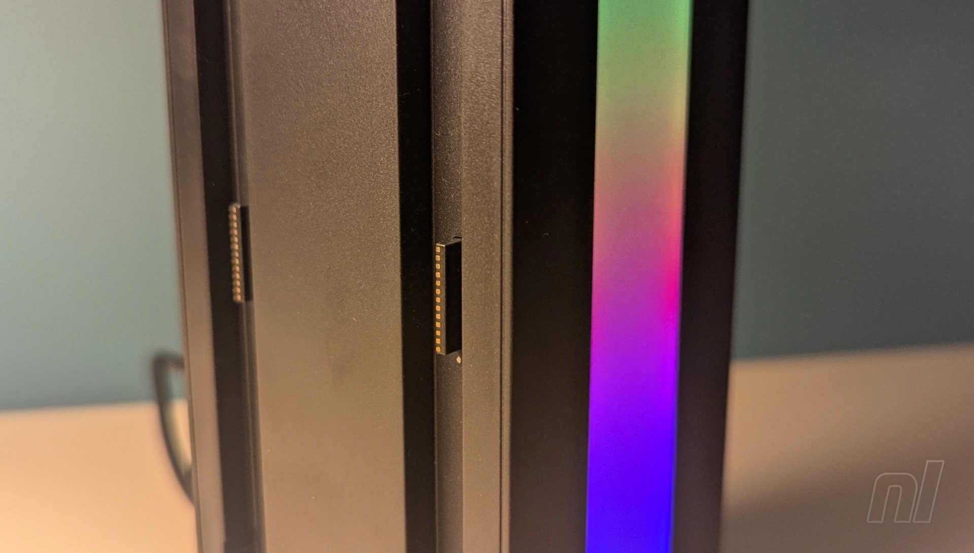 The biggest draw is the RGB strip on the front. This lights up automatically when you connect the dock to a power source via the included USB-A to USB-C cable, but you can opt to turn it off by pressing the circular button located on the top of the device.