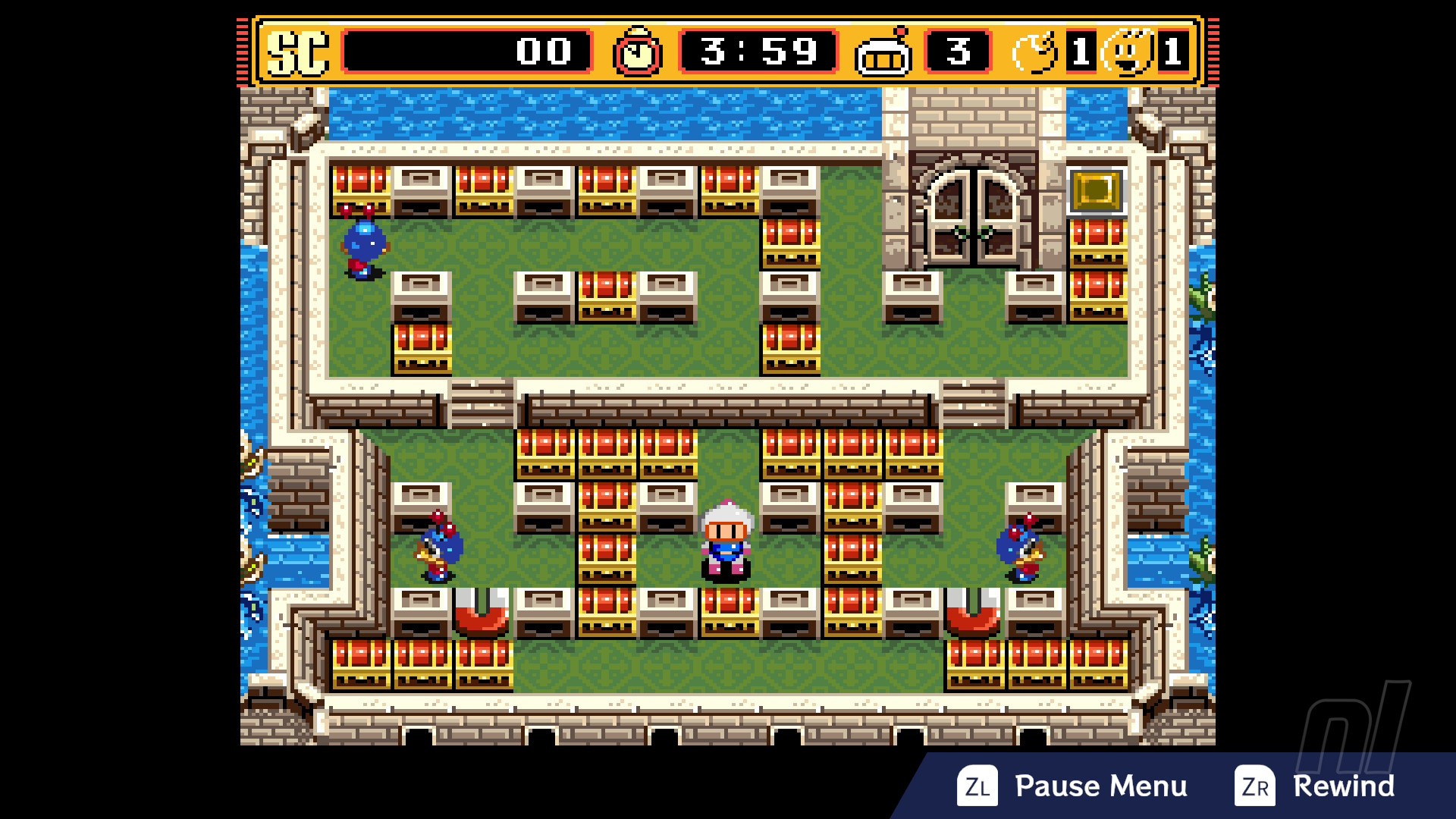 This being an emulated collection, Konami also saw fit to include some welcome quality-of-life updates to present these games in their best possible light. Not only do you have an array of display options such as different borders and screen filters, but there’s also support for save states and an easily toggled rewind feature. The save states help to get around the somewhat antiquated password system for marking progress through each story mode, while dropping a bomb in the wrong spot is now something you can cleanly erase by just holding down a button to rewind time a few seconds back for a do-over.