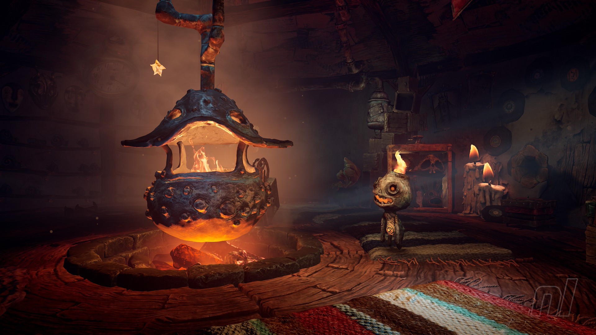 Yet through all the gloom all is Potboy, your helpful little adopted child. He scrambles around, igniting things to help you on your way. You'll occasionally come across coal that can be fed to him, which elicits a squeak and a merry little dance. He remains a positive presence throughout this bleak and oppressive tale.