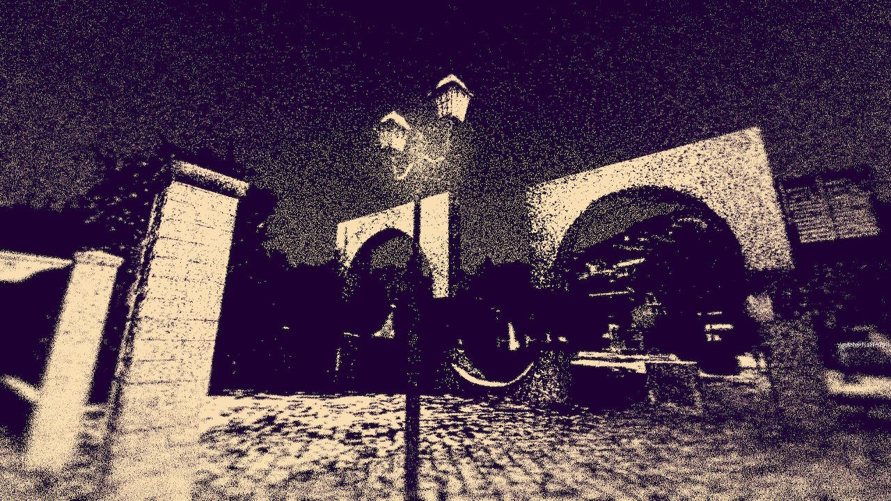 Visually, the game could hardly be more distinctive. The art, by Sebastián Valbuena, sees figures drawn by hand in black outlines on white backgrounds making up the cast of the game. They sit on top of hazily dithered two-tone scenes. This effect layered on top of the 3D environment completely disguises the level of detail in the world, its lighting and textures – almost anything that might normally contribute to overall visual impressions.