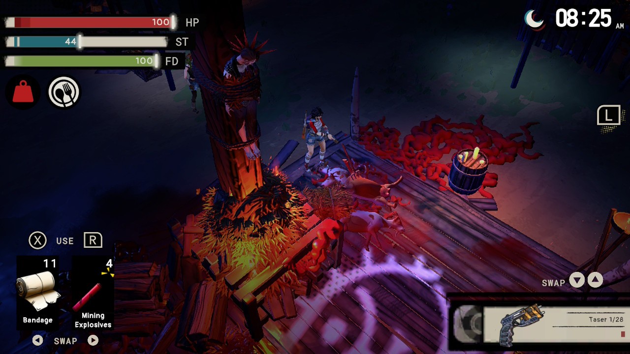 The core gameplay — the twin-stick shooting and combat — won me over quickly. Sneaking around, creeping past monsters, and crafting new weapons and bombs to deal with any that got too close was fun. I soon found an enjoyable balance between being cautious and gung-ho. I enjoyed throwing Molotov cocktails at mutated creatures, watching them burn, and then picking them off with a few rounds of my newly crafted rifle.