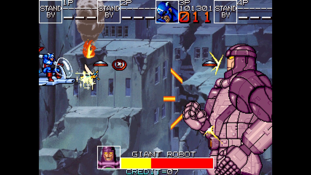 This heavily leans toward the fact that it — and probably everything else — is little more than a rom collection. While that’s to be expected, it would have been nice for the title to have enjoyed the same attention and augmentations given to Konami’s arcade game. The Mega Drive and NES versions of Captain America and The Avengers are also included, with the latter being a wholly different, pretty engrossing (but considerably tough) platform game, and the former a ropey, inferior arcade port.