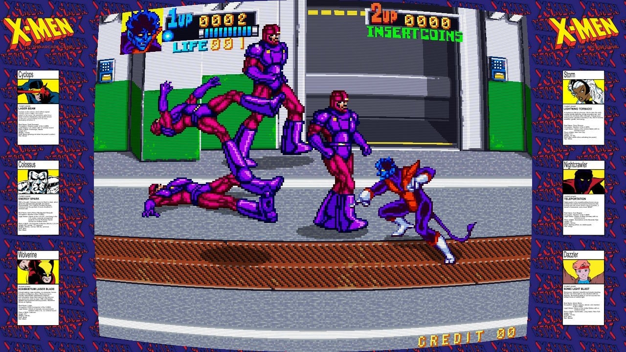 Superb fun, and elevated considerably through multiplayer, while its character movesets are somewhat limited by modern standards, early '90s Konami were such a tour de force that they could barely put a foot wrong. It offers a thrilling romp through the X-Men universe of yesteryear, featuring a cast of six favourites — Colossus, Cyclops, Wolverine, Storm, Nightcrawler, and Dazzler — fighting against Magneto’s hordes: Sentinels, Juggernaut, Wendigo, and more.