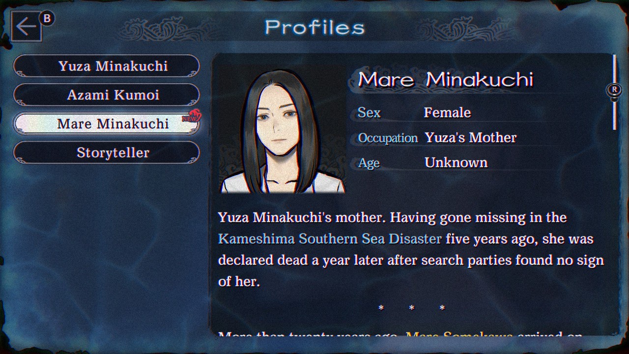 Otherwise, yes, The Mermaid’s Curse is loaded with text that you’ll need to work your way through fairly slowly if you want to take it all in over the roughly 10-hour runtime. Specifically, the in-game files and character profiles contain hundreds of words' worth of backstory and lore. This isn’t a game to rush through.