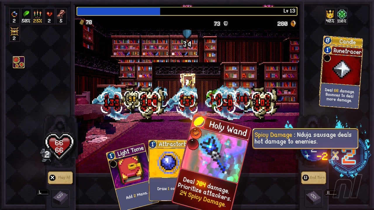 Speaking of Switch 2-specific, Vampire Crawlers really sings, especially in handheld mode. With how busy the screen can get with various effects and how crowded your hand can get, the touchscreen is a godsend. You can tap pretty much everything on the screen to see what is going on with it, and get definitions for certain stats. The cards in your hand can also be rearranged using this which feels great. It’s a dream “I have a half-hour lunch break to play a run” roguelite.