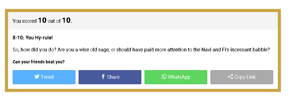 Nice. 10/10 for the Mario Quiz, and now 10/10 for the Zelda Quiz.